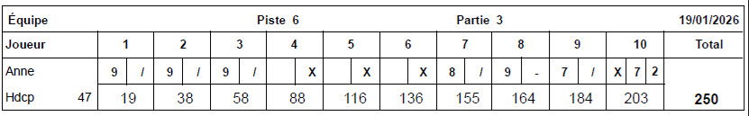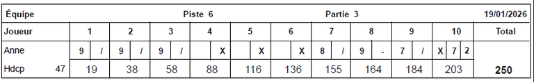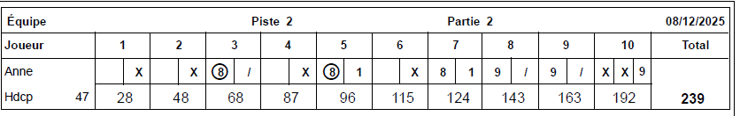 Le meilleur score féminin de la soirée du 08 décembre