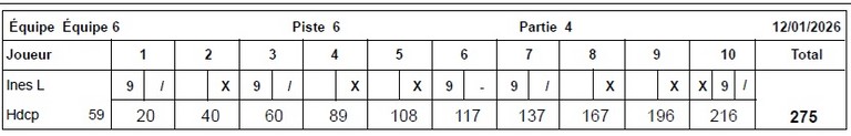 Le meilleur score féminin de la soirée du 12 janvier