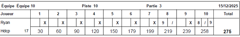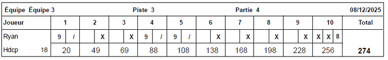 Le meilleur score masculin de la soirée du 08 décembre