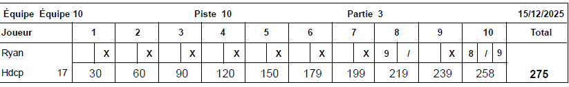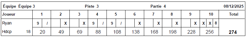 Le meilleur score masculin de la soirée du 08 décembre