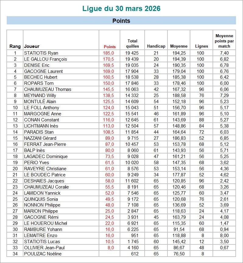 Calcul des points