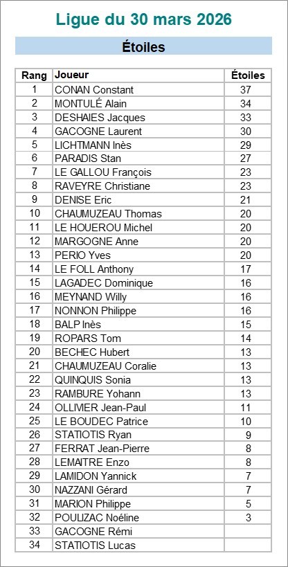 Tableau des étoiles